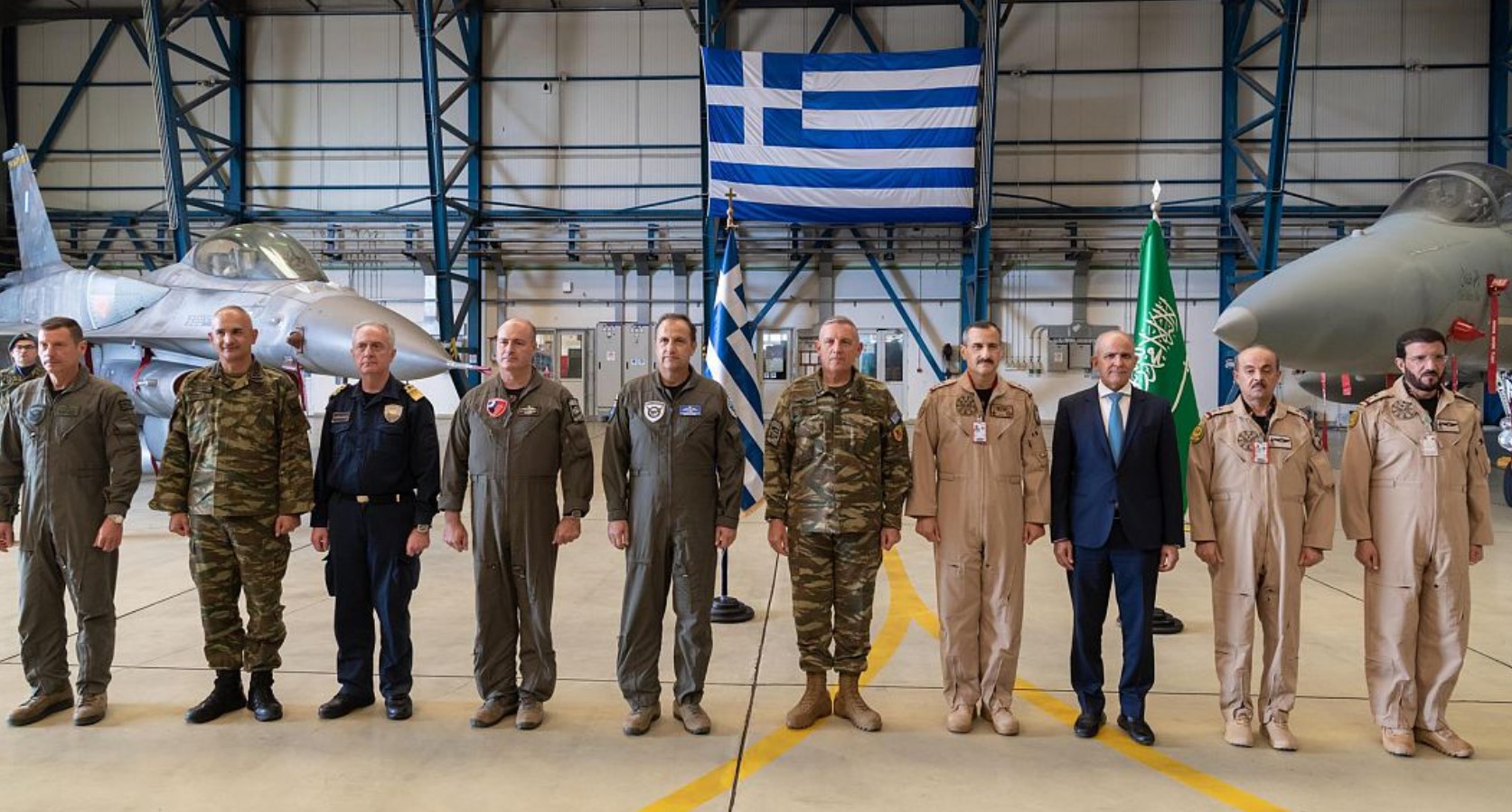 و قال العقيد الطيار الركن راشد بن عبدالعزيز العبودي الملحق العسكري السعودي : يهدف التمرين السعودي اليوناني المشترك إلى دعم أواصر التعاون العسكري وتنفيذ تدريبات جوية في بيئات مختلفة.