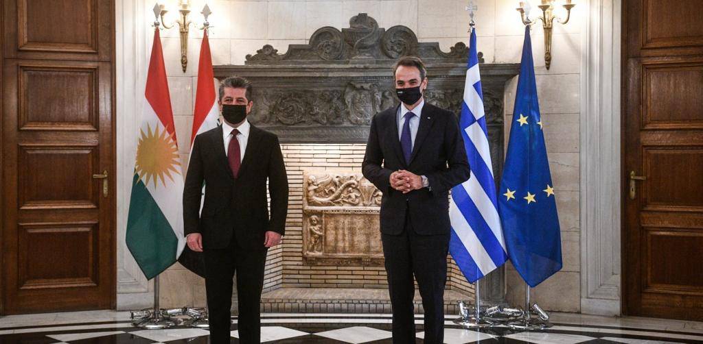 التقي رئيس الوزراء اليوناني كيرياكوس ميتسوتاكيس مع رئيس حكومة إقليم كوردستان مسرور بارزاني، و الذي وصل إلى العاصمة اليونانية أثينا على رأس وفد حكومي في زيارة رسمية هي الأولى من نوعها. وتم خلال الاجتماع بحث وجهات النظر حول التعاون الثنائي، مع التركيز على القطاع الاقتصادي والثقافي، كما تم الإعراب عن الاستعداد لخطوات محددة من شأنها أن تؤدي إلى الاستخدام الكامل للإمكانيات، و تبادل الآراء حول عدد من القضايا ذات الاهتمام المشترك التي تهم المنطقة.